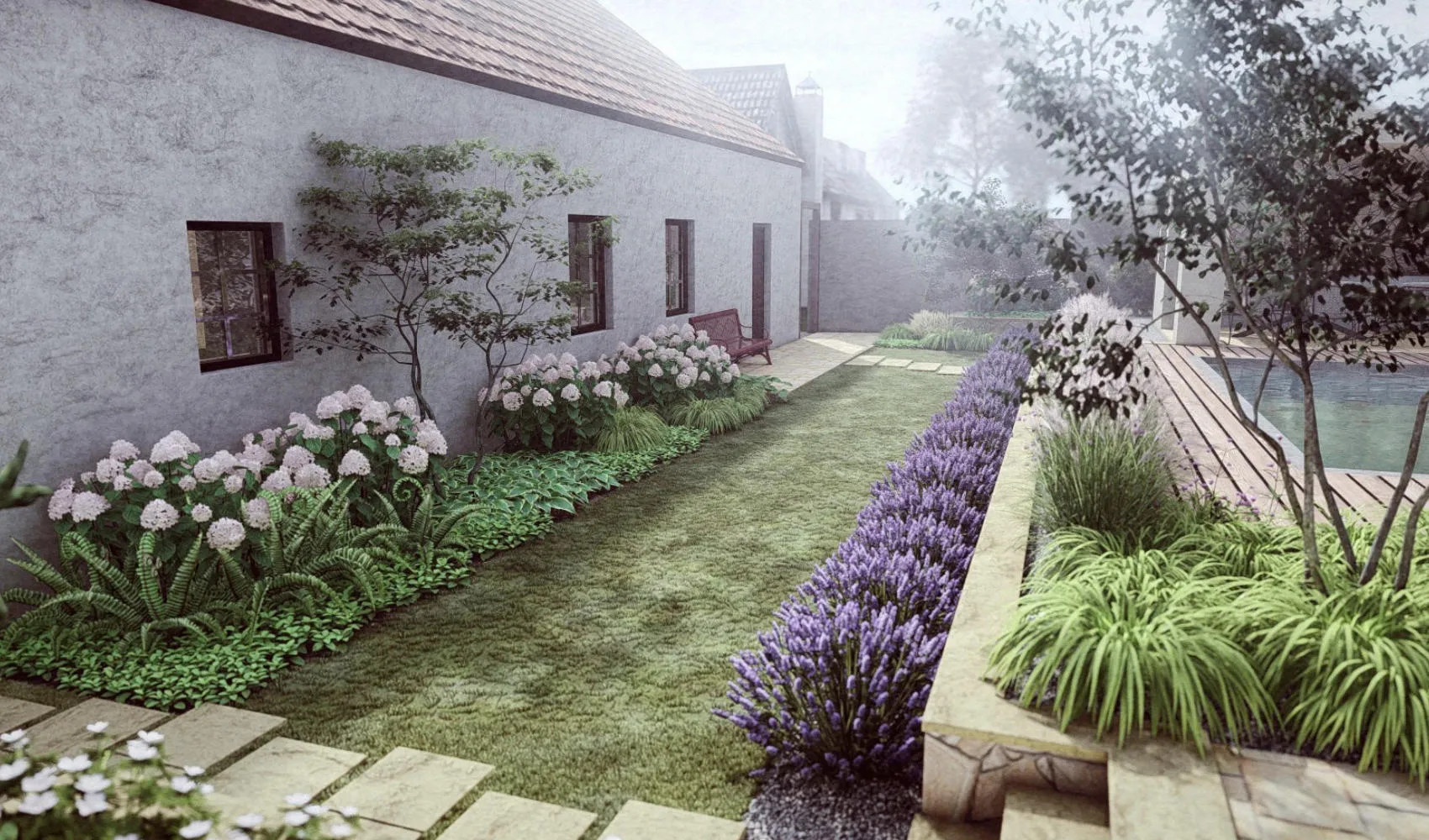 We follow a thoughtful step-by-step process to ensure your vision is brought to life. It all begins with an initial consultation, either in our office or online, where you share your garden situation, goals, and specific requirements. During this conversation, we guide you to think more deeply about the various areas of your garden, helping to clarify your brief, which forms the foundation of our work. Based on the brief, as well as details such as garden size, terrain type, and the number of structures required, we provide you with a price estimate for our services. Once the estimate is accepted, we schedule a site visit to explore your space together. This is when we gather important information, conduct a survey, and collect any necessary house and garden documents from you. Using this, we begin to draft the first design ideas and sketches, create a mood board, and offer a brief explanation of our proposed concepts. The next phase involves creating a detailed 2D scaled garden plan and a 3D visualization to help you better understand the layout. Throughout the process, we typically hold at least two consultations to ensure the design aligns with your needs, making adjustments as necessary before finalizing the architectural study of your garden.