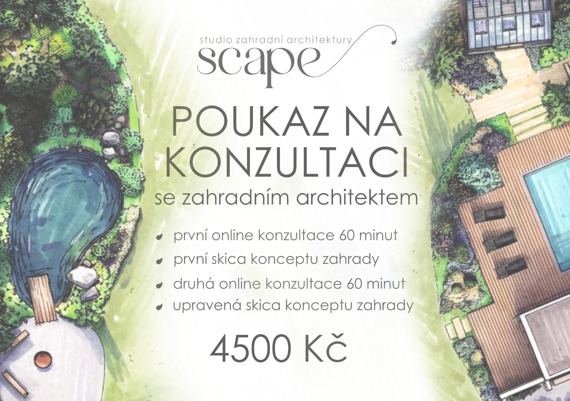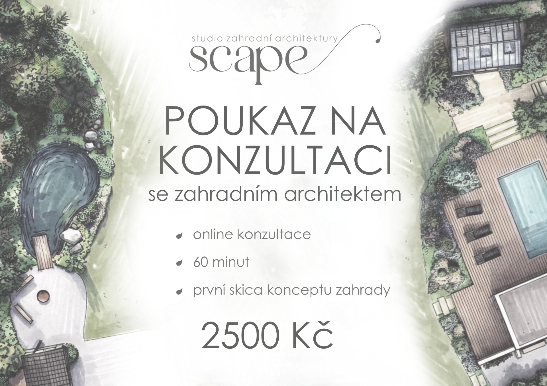 Tento poukaz zahrnuje až 60 minut konzultace se zahradním architektem a první skicu návrhu vaší zahrady.